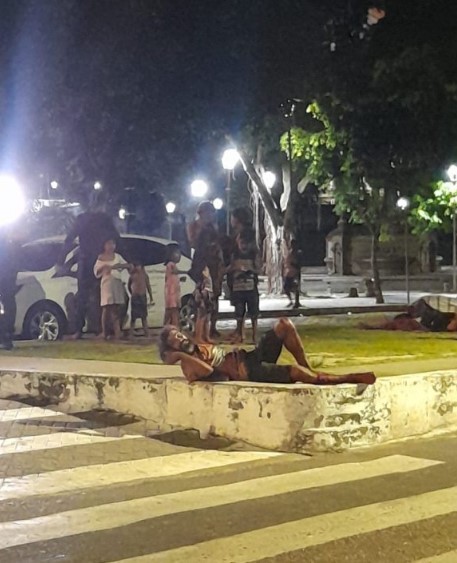 Na noite desta segunda-feira (22), um morador de rua identificado apenas como Fredson, de 40 anos, foi espancado perto da Manaus Moderna, no bairro Centro, zona sul de Manaus. Ele caiu todo ensanguentado na Praça do Relógio.