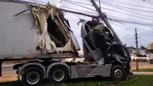 O acidente ocorreu na altura no km 8 da via, em frente à sede da Equatorial Pará, pela madrugada. Não houve registro de feridos, mas vários danos materiais foram causados. Uma árvore também foi atingida. A frente e parte de uma das laterais da carreta ficaram destruídas.