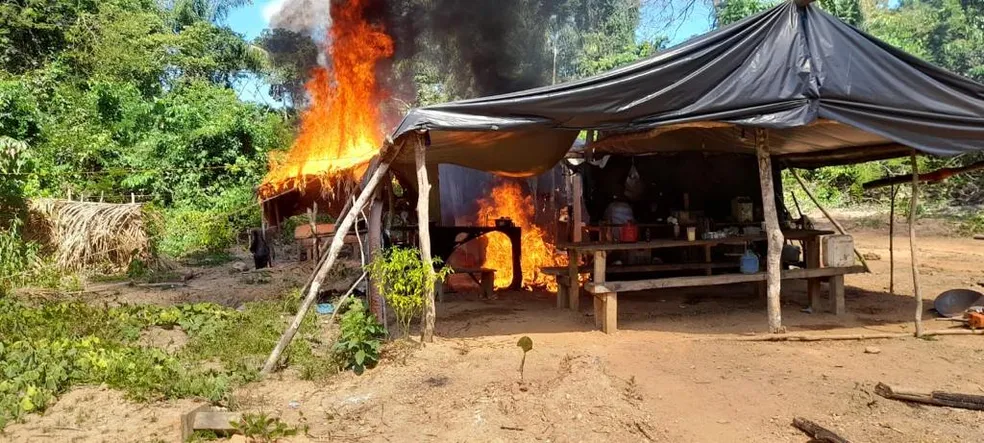 A operação na sexta-feira (16) desmobilizou os acampamentos montados pelos garimpeiros. Nove motores estacionários, que servem de apoio aos garimpos, foram destruídos. A pessoa presa estava com uma espingarda em um dos acampamentos. Meio Ambiente: Quatro garimpos Meio Ambiente: Quatro garimpos