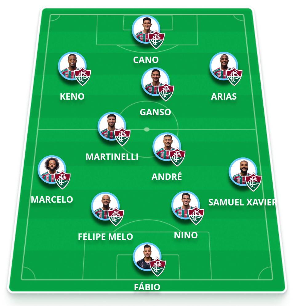 Escalação provável do Fluminense: Fábio; Samuel Xavier, Nino, Felipe Melo e Marcelo; André, Martinelli e Ganso; Arias, Keno e Cano.