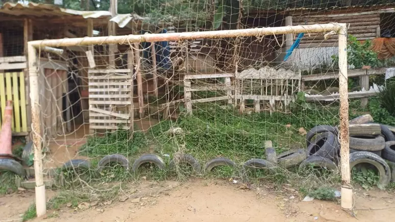 O gol precisa estar em pé no dia 26 de outubro, quando será realizada a festa do Dia das Crianças, que foi adiada. Se as traves novas não chegarem, o conserto está feito na velha. “Se você olhar a madeira que usamos, é ainda mais resistente, é peroba. Enterramos bem no chão, depois encaixamos a trave por cima, dentro da madeira. Por fora, é cano de PVC”, explica Lelê.